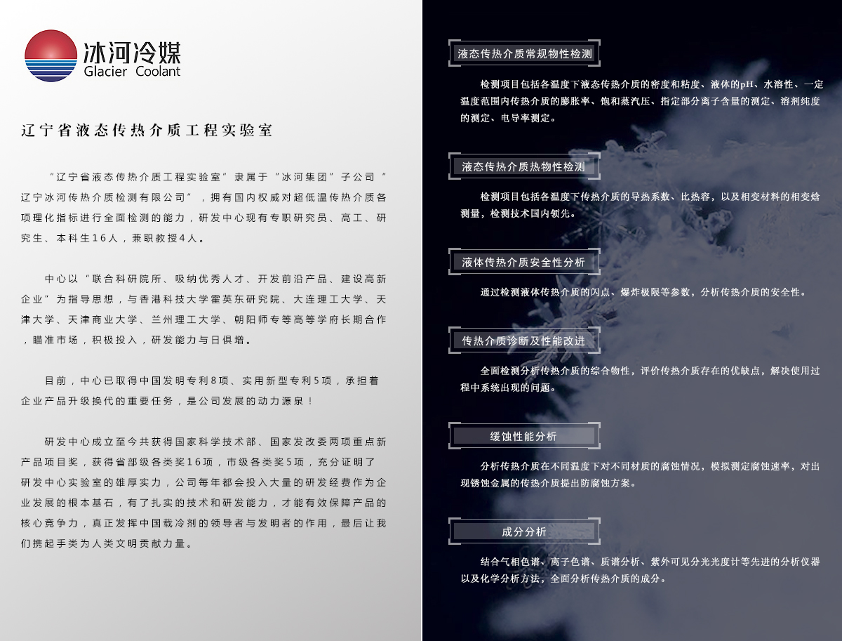 全資子公司:冰河冷媒科技(北京)有限公司 | 冰河冷媒科技(朝陽)有限公司 | 朝陽光達(dá)化工有限公司 | 遼寧冰河傳熱介質(zhì)檢測有限公司 | 朝陽永盛倉儲有限公司